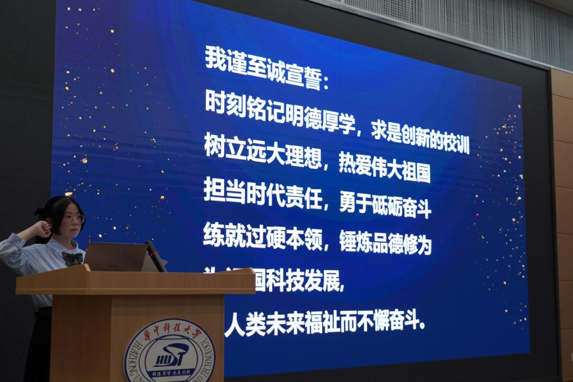 2022级新生代表郎诗韵许下了自己对老员工活的期待,认为未来需要青春的挺拔身姿,需要创新的不竭动力,更需要华中大人的接续奋进。展望未来,她呼吁新生们在探索中承己任,在奋斗中谱新篇。最后,郎诗韵带领全体新生宣读入学誓词。