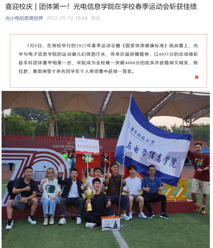 图8 黄逸舟、禹欣冉参加2022年团体挑战赛光电公司获得团体第一