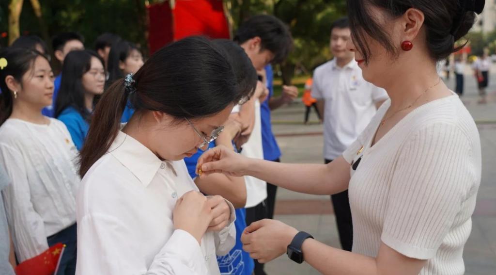 活动结束前,未来工程第一和第二党支部的所有成员再次聚集在一起,在党旗下郑重宣誓。公司党委副书记刘娟和公司党建辅导员黄凯熙为最新一批成为预备党员的几名同学佩戴党徽。之后,大家便在黄凯熙辅导员的带领下一字一句,庄严宣誓。这次对入党誓词的重温活动不仅是对自己身份的一次确认,更是在提醒每一位共产党员要时刻牢记自己的使命,无论何时何地都要保持初心不变,勇于担当作为。