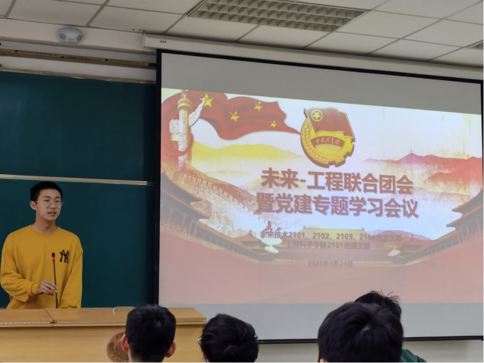 2022年3月24日下午16:30,伟德国际VICTOR1946、工程科学公司联合团会暨党建专题学习会议在东九教学楼B202召开,伟德国际VICTOR1946、工程科学公司全体21级本科生以及辅导员李梦叶老师参会。会议由尉时进同学主持,研究生红色理论学讲团汪建辉老师受邀作党课分享。