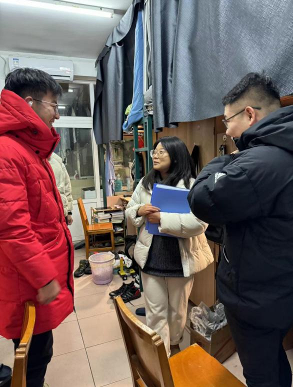 2月24-25日,学工组与研究生班主任一起走进员工宿舍,关心同学们的宿舍生活,与同学们热切交流新学期的计划与期望并进行安全提示。同学们整装待发,准备好迎接新学期、新挑战。